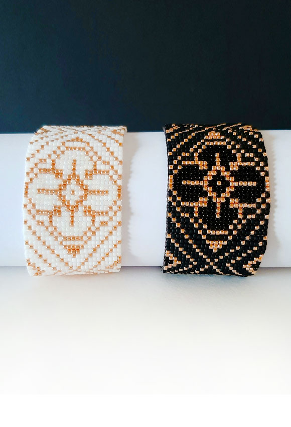Brățară țesută din mărgele inspirată de modelele tradiționale românești