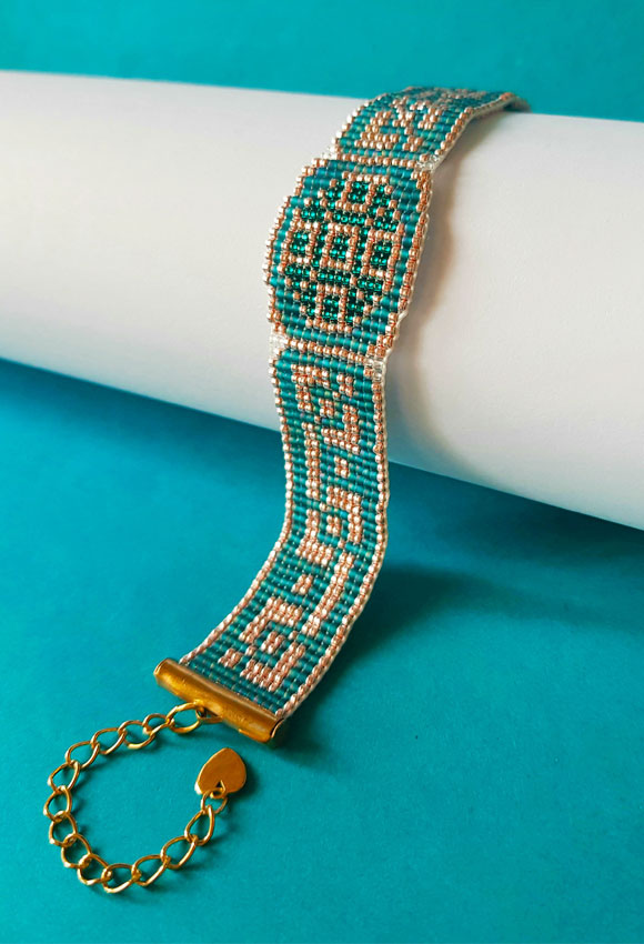 Brățară țesută din mărgele inspirată din motive tradiționale