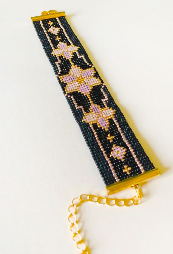 Brățară țesută din mărgele cu model floral