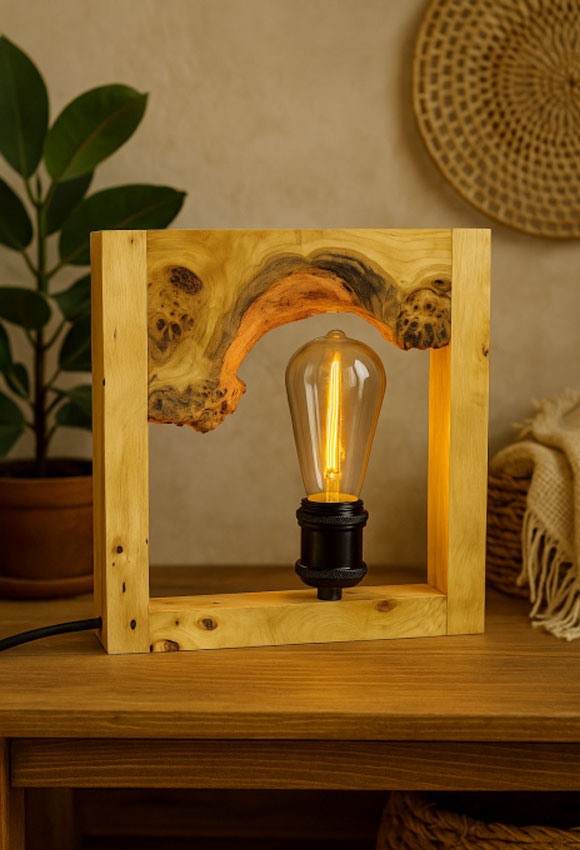 Lampă handmade din lemn masiv cu ramă naturală – MDL 41