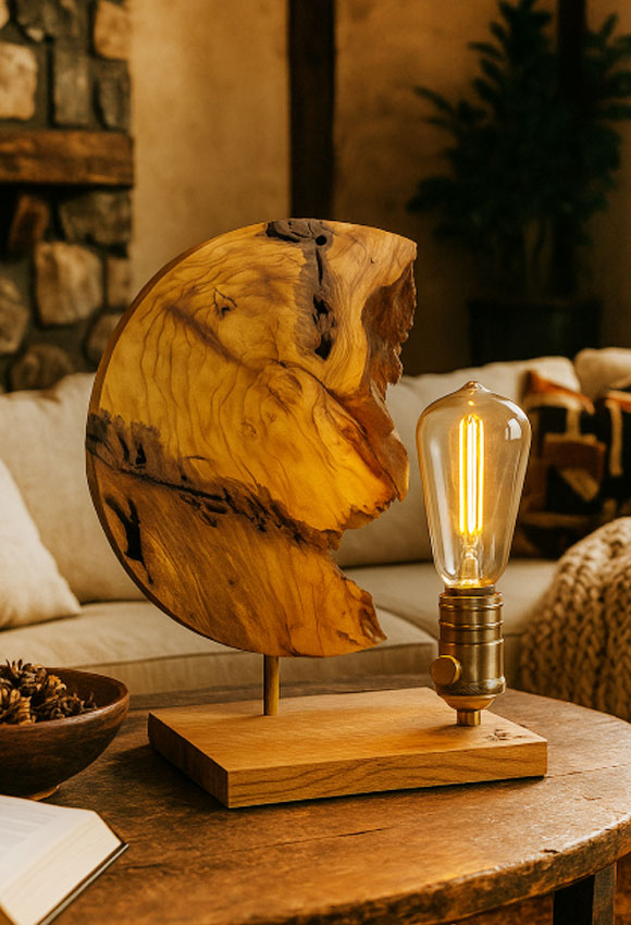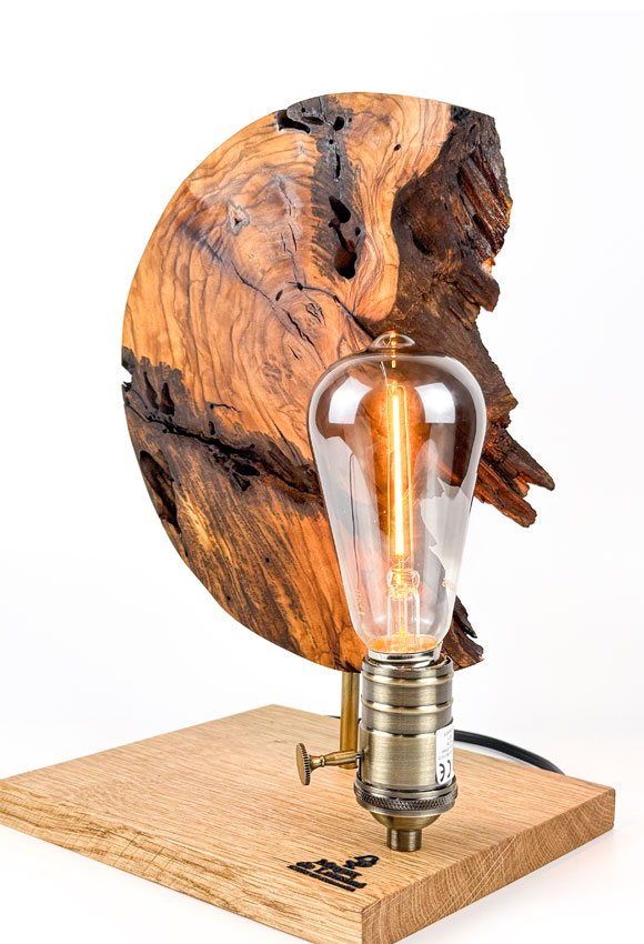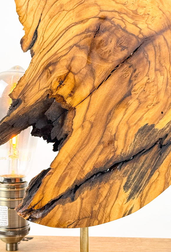 Lampă „Luna de Foc” din lemn de măslin ars natural – MDL 52