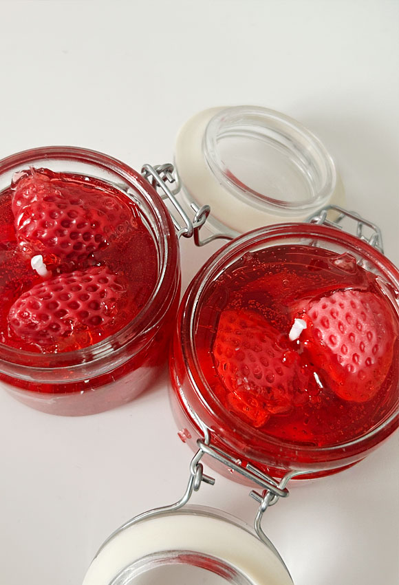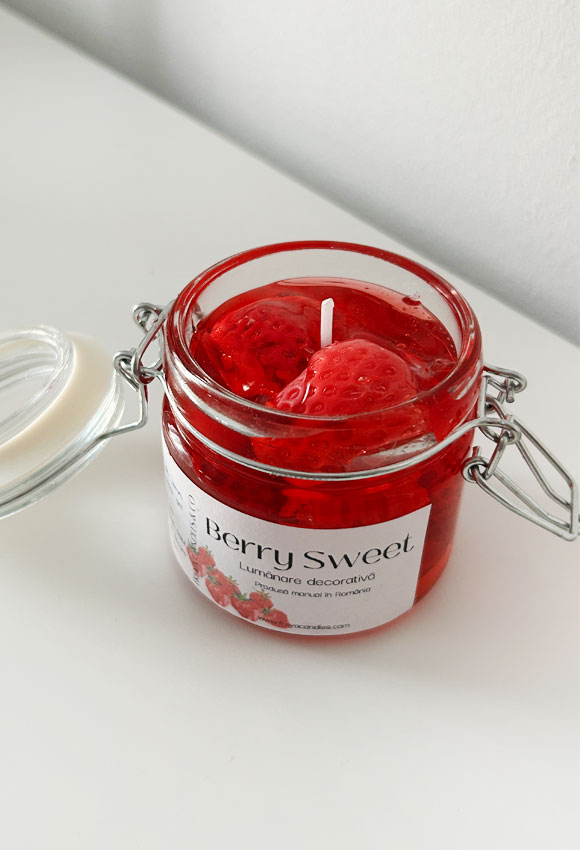 Lumânăre parfumată decorativă în recipient de sticlă. Lumânările sunt produse în totalitate manual și au un miros plăcut de căpșuni și fructe de pădure. Fiecare lumânare este unică și are o durată de ardere de 30 de ore.