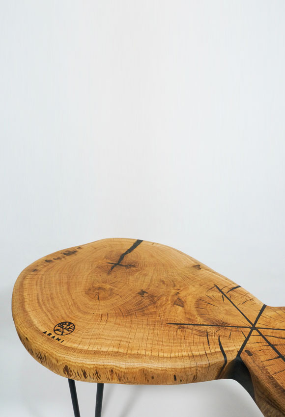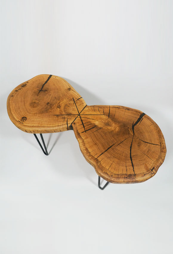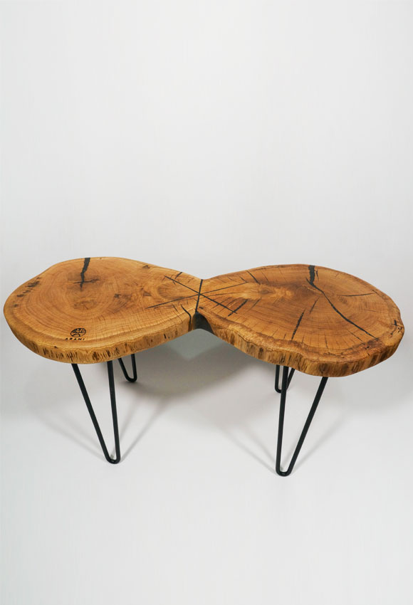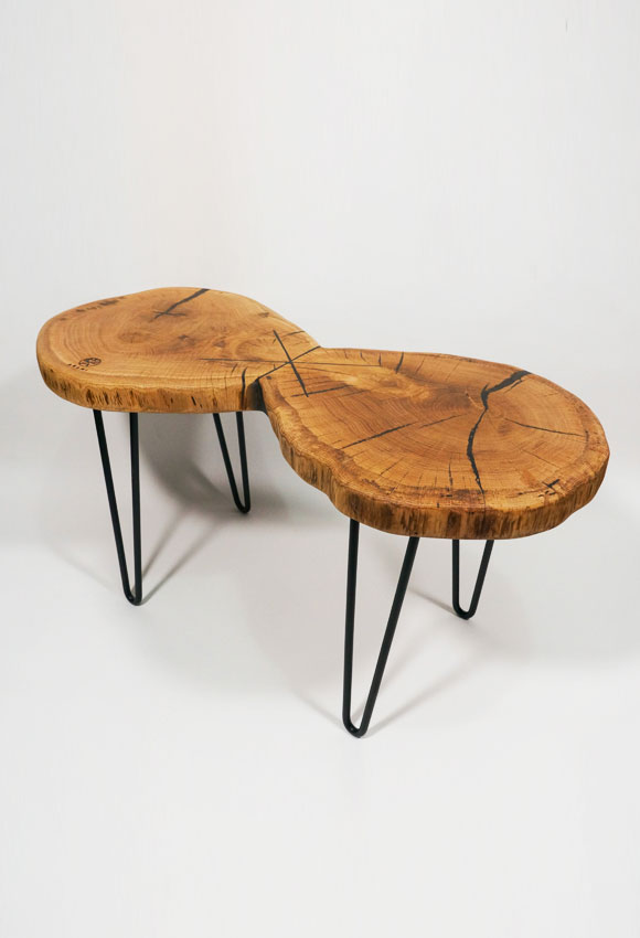 Masuta de cafea din felie de lemn de stejar tratata cu rasina si hard top oil.