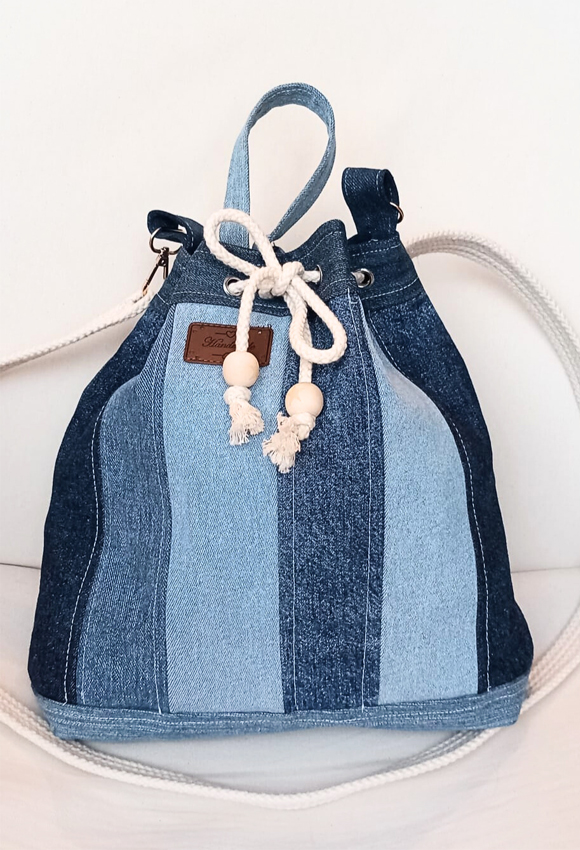 Rucsac denim stil patchwork – “Sac”